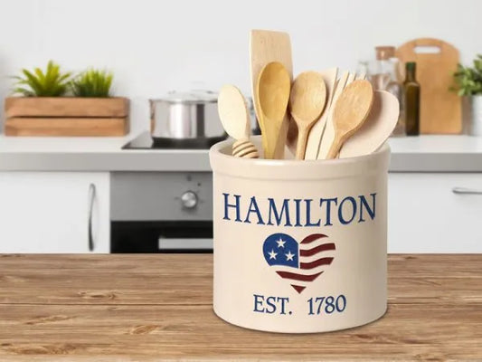 Personalized Heart Flag 2 Gallon Stoneware Crock - Two Lines