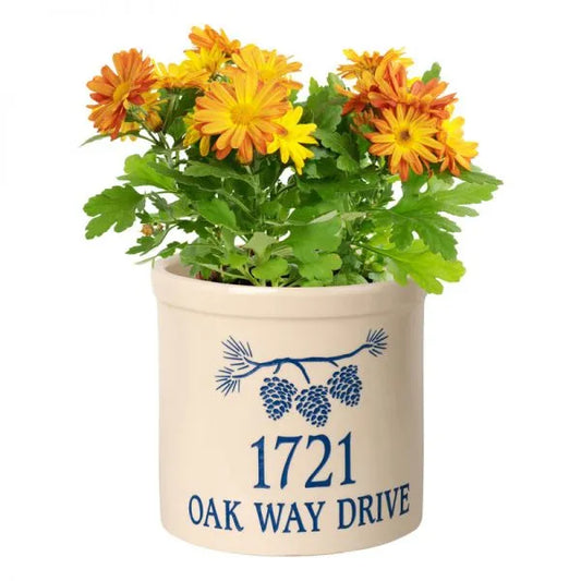 Personalized Pinecone 2 Gallon Stoneware Crock - Three Lines
