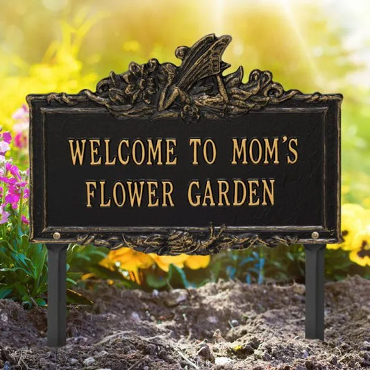 Butterfly Rose Garden Quote Personalized Lawn Plaque - One Line