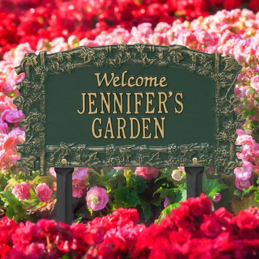 Ivy Trellis Garden Welcome Personalized Lawn Plaque - Two Lines