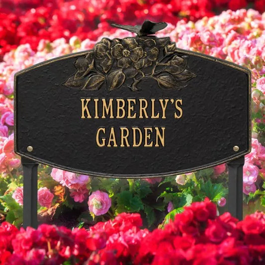 Butterfly Rose Garden Personalized Lawn Plaque - Two Lines