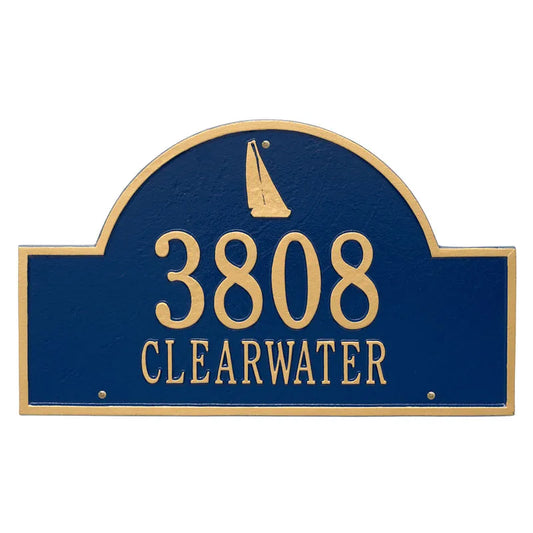 Sailboat Arch Estate Wall Address Plaque - Two Lines