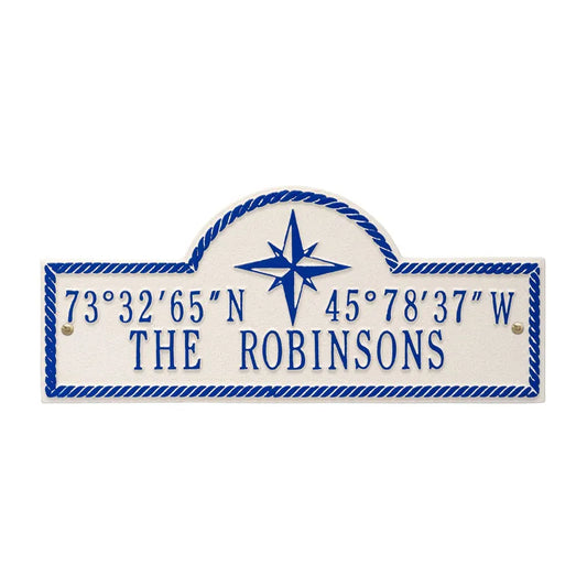 This nautical themed collection of personalized Whitehall Address Plaques will a maritime touch to your beach, lake, or river home. Made to order in USA.