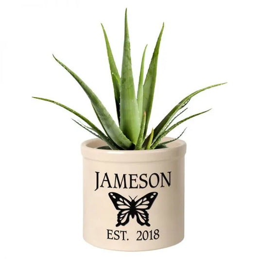 Personalized Butterfly 2 Gallon Stoneware Crock - Two Lines