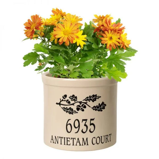 Personalized Oak Branch Address 2 Gallon Stoneware Crock - Two Lines