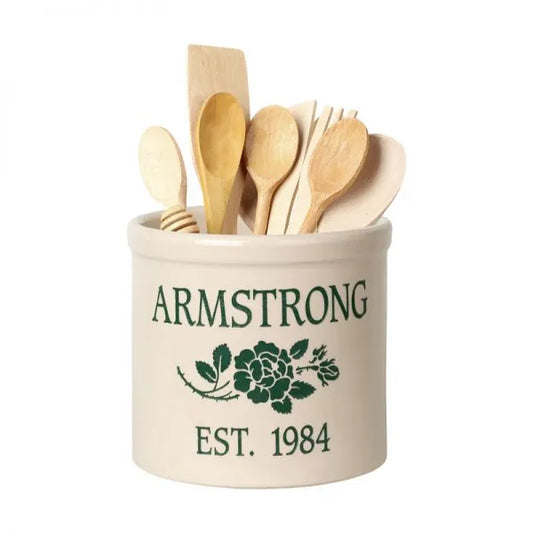Whether you are planting herbs and flowers, storing kitchen utensils or chilling beverages for a weekend gathering, these versatile two-gallon Bristol stoneware crocks are practical and personal adding a welcome addition to any abode.