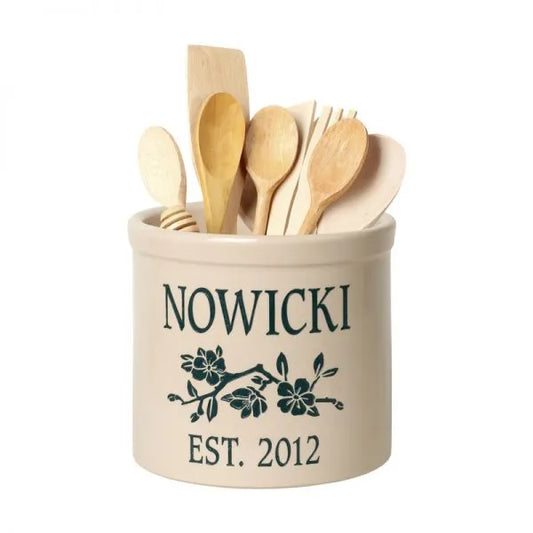 Personalized Dogwood Branch Established 2 Gallon Stoneware Crock - Two Lines