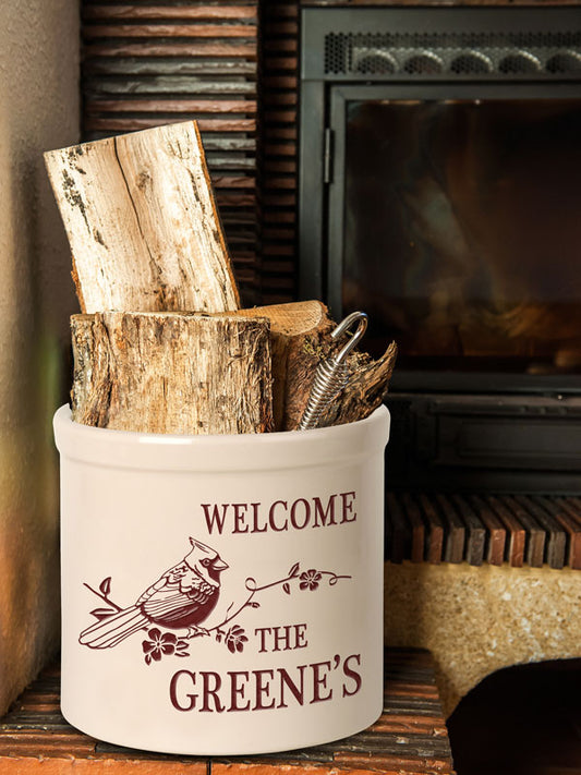 Personalized Perched Cardinal Welcome 2 Gallon Stoneware Crock
