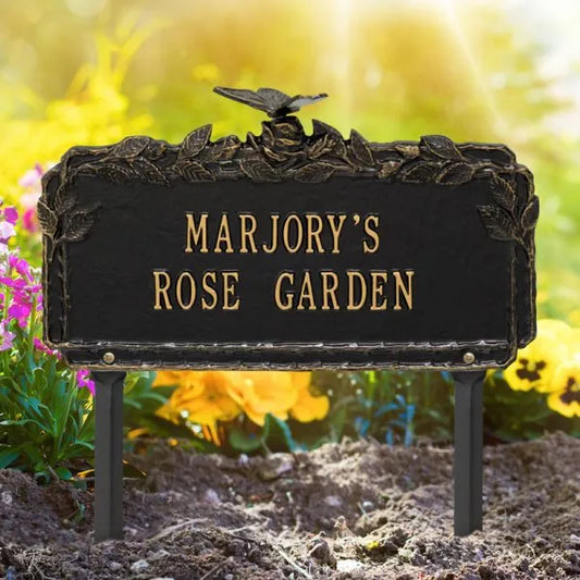 Butterfly Rose Garden Personalized Lawn Plaque - Two Lines