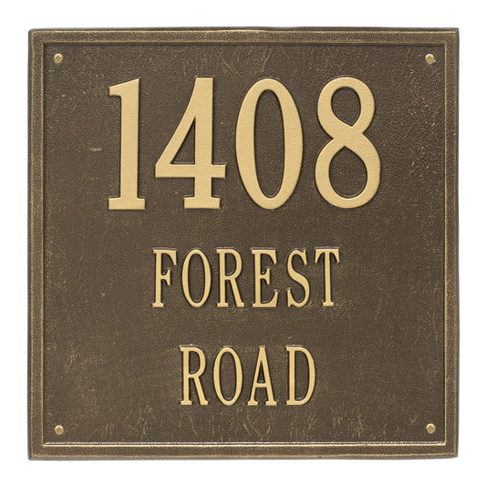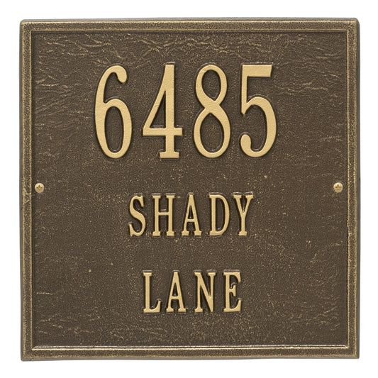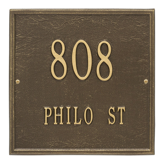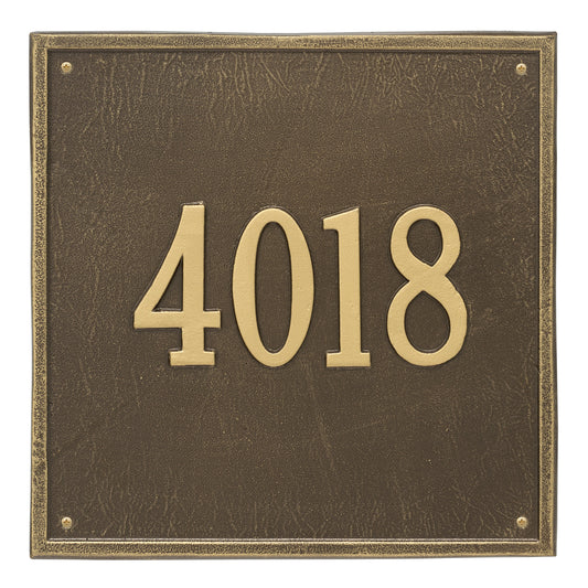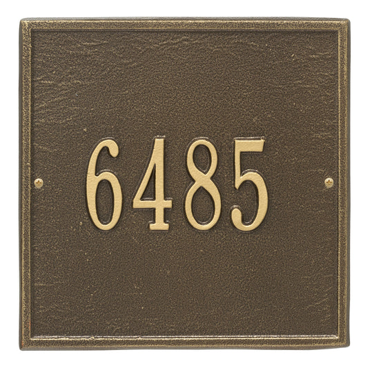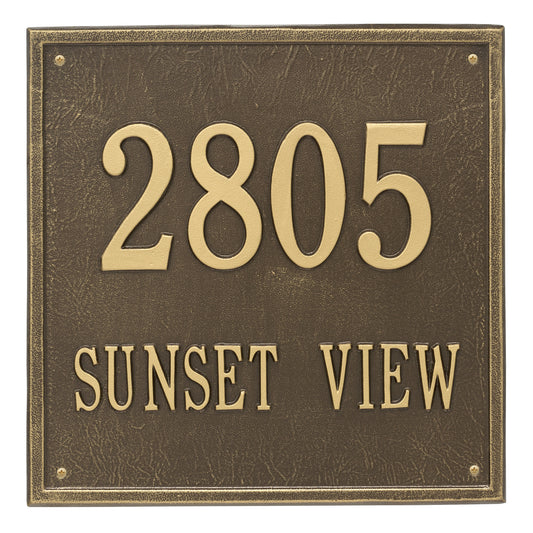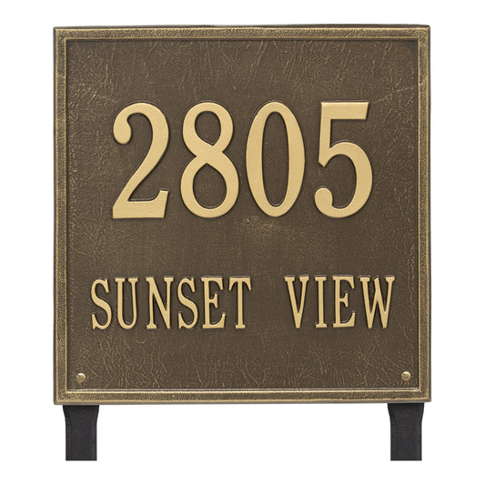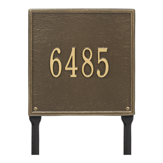 The square-shaped address markers from Whitehall Products come in a large variety of colors and sizes. Square address plaques can be mounted on the exterior of your house, on a post near the entrance of your driveway, or on stakes mounted into the ground.