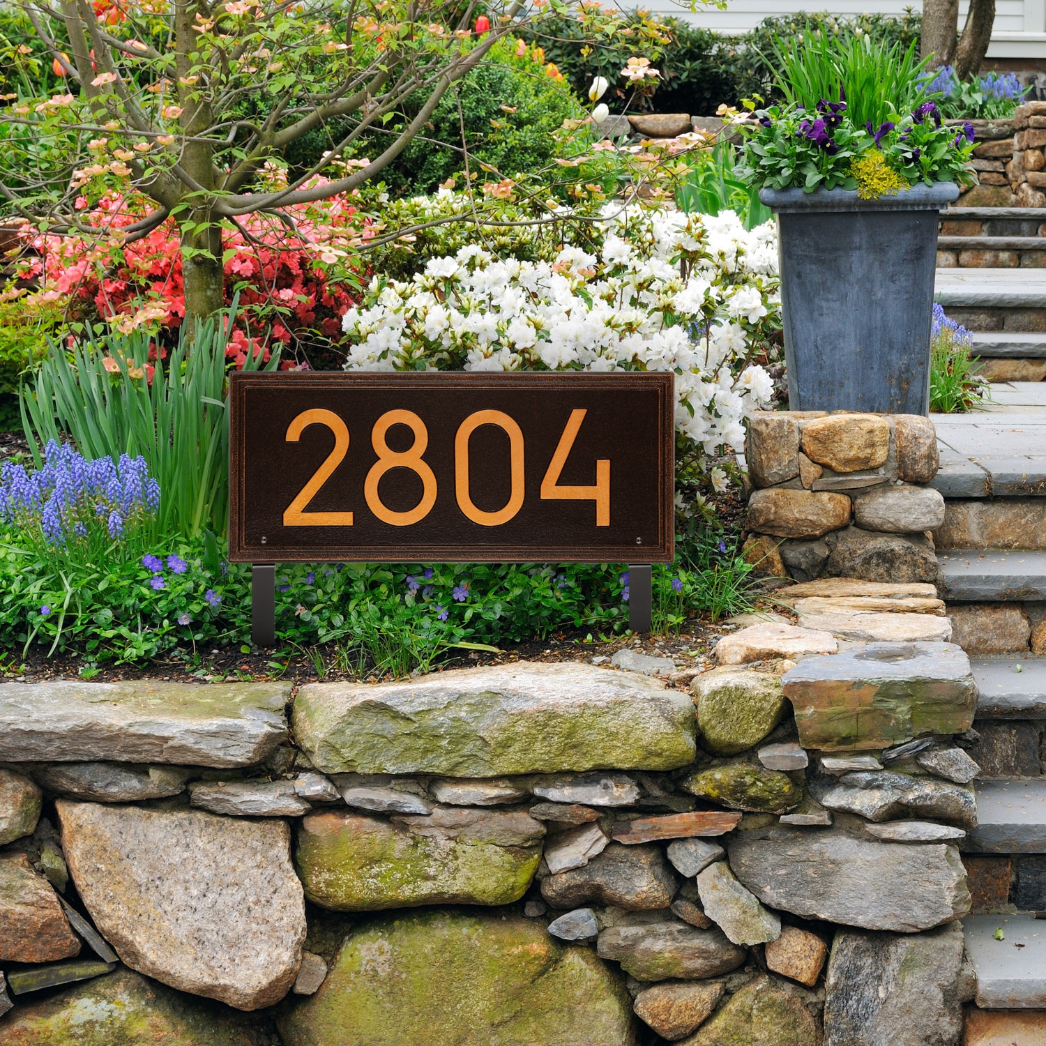 Double Line Modern Font Rectangle Estate Lawn Address Plaque - One Line