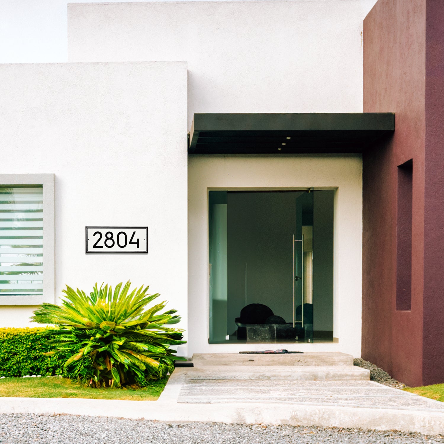 The Whitehall Double Line Modern Font Rectangle Estate Wall Plaque features sleek and contemporary font design adds a touch of elegance to your home, making a lasting impression on guests and passersby.